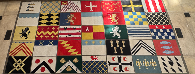 The chapel is really lovely, but this carpet with the family crests throughout the year was rather edifying.