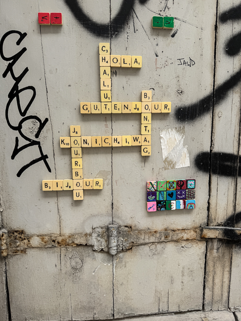 Appropriately, or ironically, depending on your point of view, 36 Rue St. Sulpice sits directly across from the church. What makes this building unique is the use of the different colors in the address, they are not the standard Parisian dark blue and white.