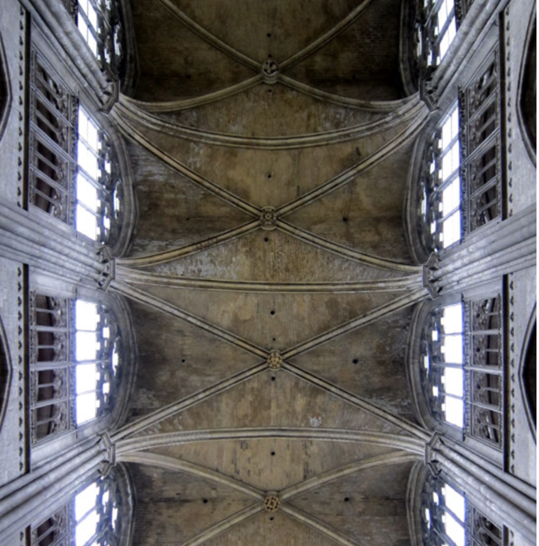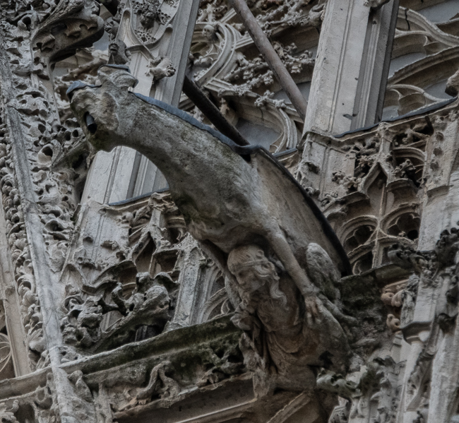 The belfry on Saint Severin strikes eight across the smoking eaves: