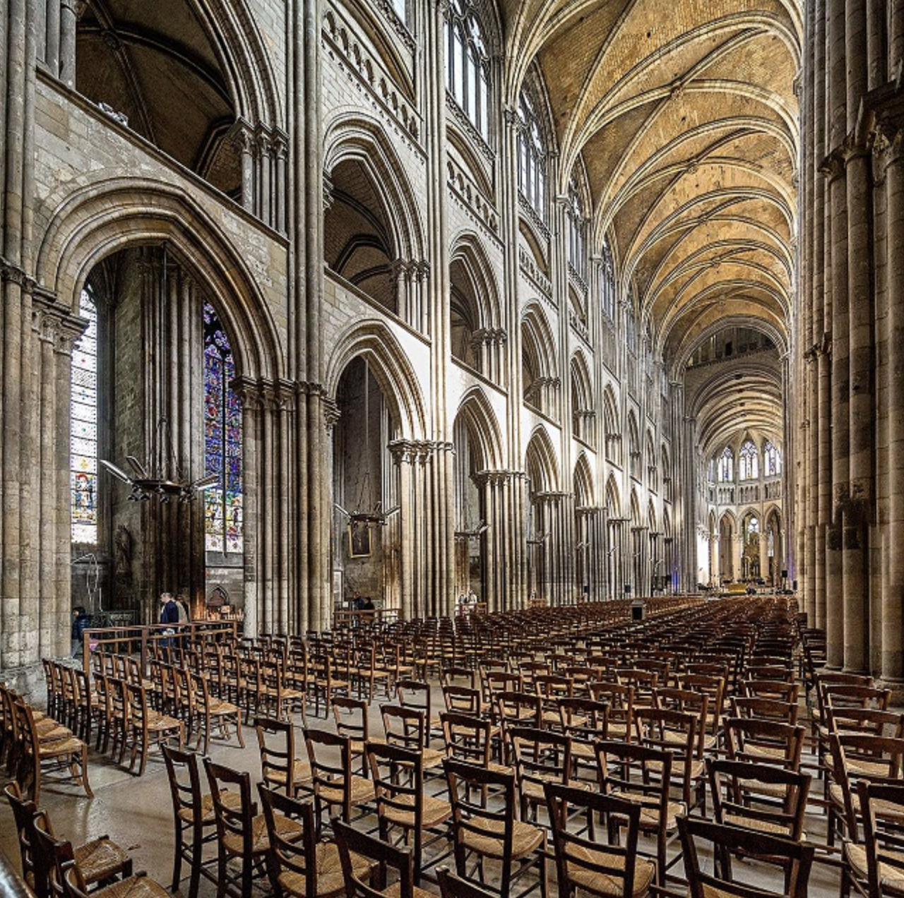Saint Sulpice is the second largest church in Paris, after Notre-Dame The gnomon system is built around a meridian, a line which is strictly oriented along the north-south axis, represented by a brass line set in a strip of white marble on the floor of the church.