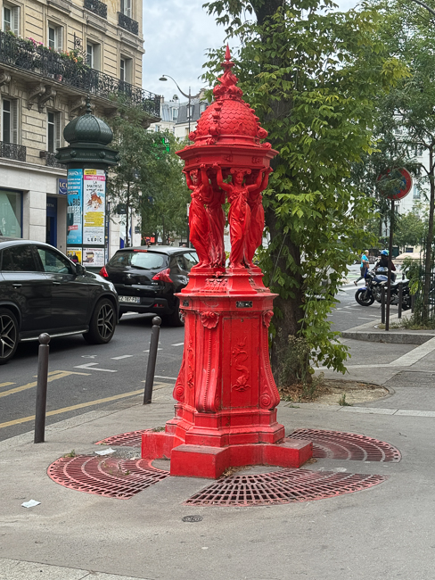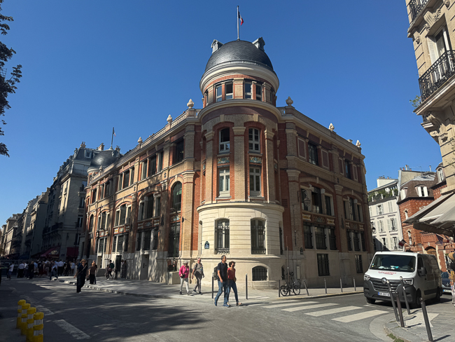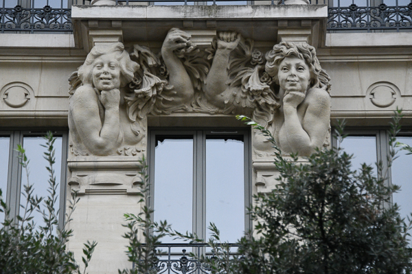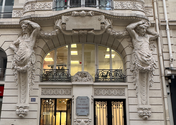 I took a picture of this building because I loved the Caryatids.  I then discovered its history. This is 45 Rue La Roch, the home of Les Cuisiniers de France. The building was originally purchased by the renowned chef Leopold Mourier, inventor of the Lobster Thermidor and owner of the famous “Fouquet” restaurant, located on the Champs-Élysées, which remains in existence today.