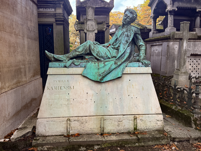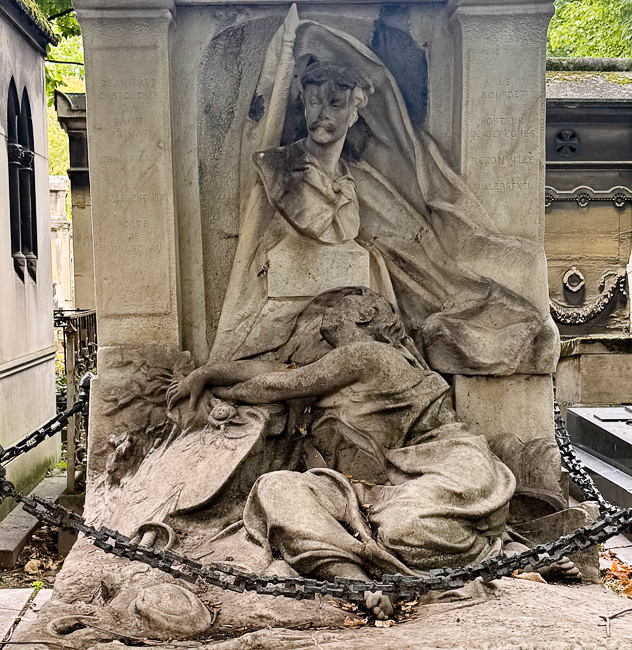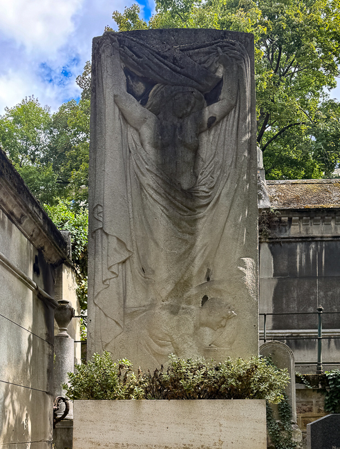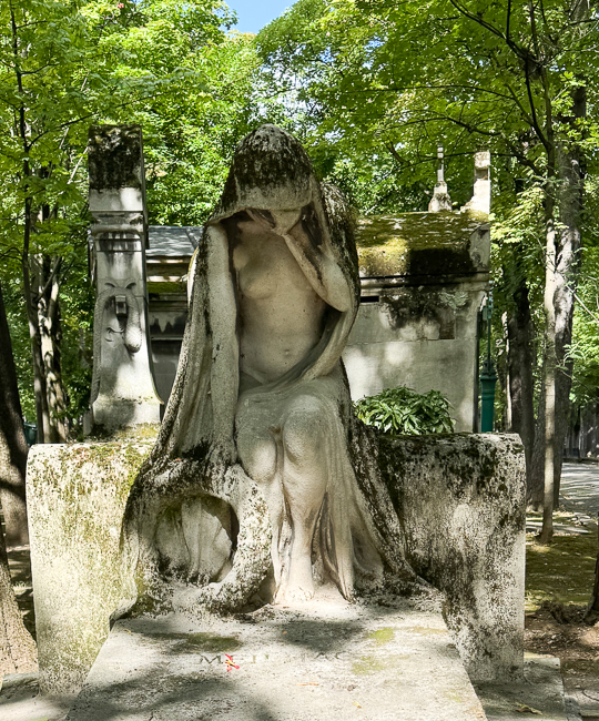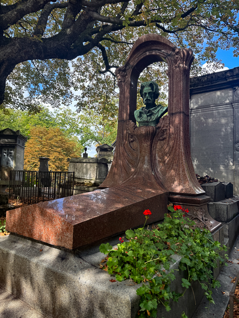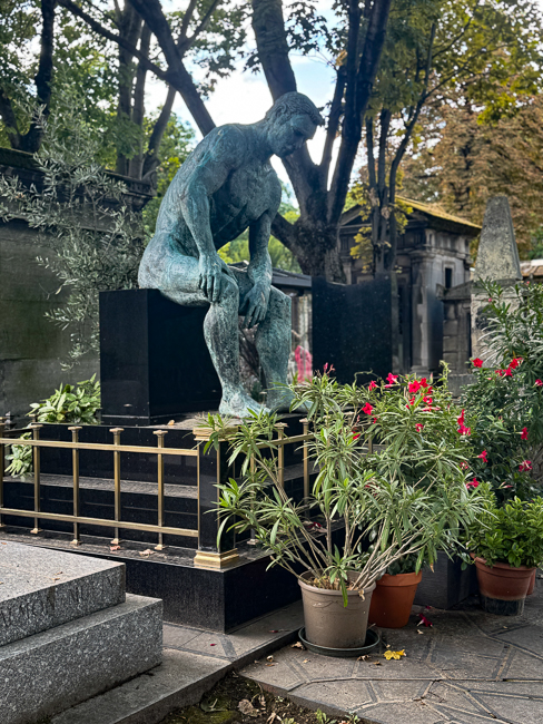 At that point I said goodbye to everyone and headed to Cimetiere du Pere Lachaise.  This is Paris’s most prestigious cemetery, I always love the cemeteries of the rich and famous because they hire the world’s most famous sculptors to make their headstones.  This is not necessarily the case at Pere Lachaise, but it is an amazing place historically.  The property was once owned by Louis XIV’s confessor, but in 1803 it was purchased by the government under order by Napoleon and laid out as a cemetery.  It was expanded six times during the 1800’s due to its popularity.  It contains such luminaries as Honore de Balzac, Chopin, Jim Morrison, Marcel Proust, Sarah Bernhardt, Oscar Wilde and Edith Piaf.  Sadly, due to the fiasco of looking for the Coulee de Vert, I only had one hour to explore before closing.