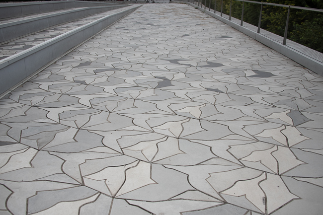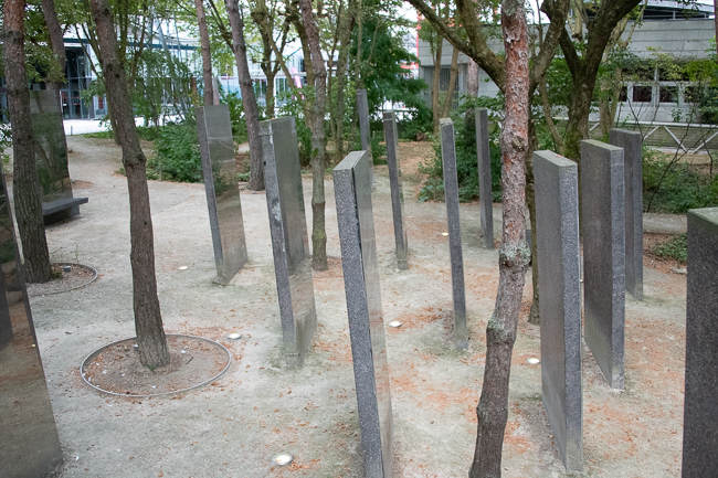 The landscaping recalls the six locations affected by the attacks: the Stade de France, Carillon and Petit Cambodge, Bonne Bière and Casa Nostra, Belle Équipe, Comptoir Voltaire, and the Bataclan.
