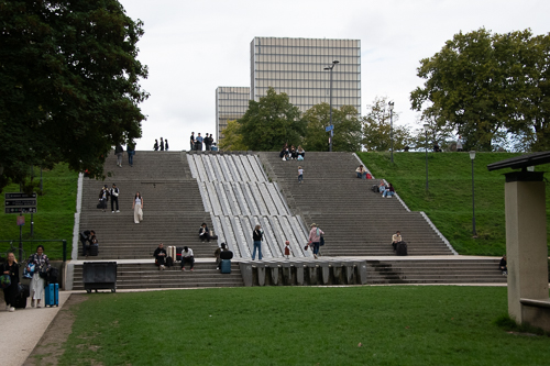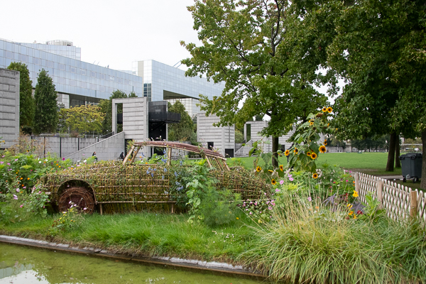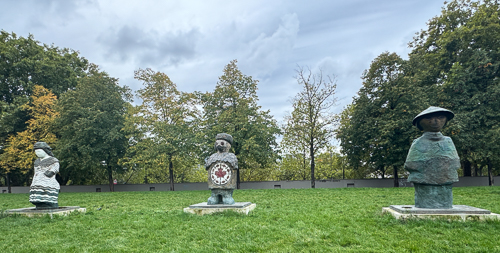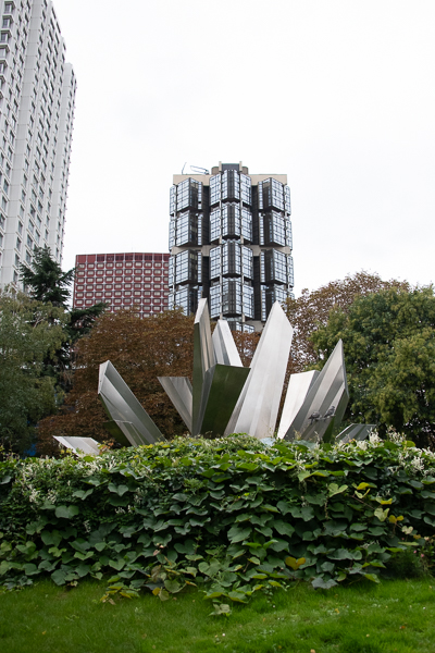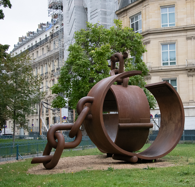 A walk through the Tuileries to catch the 69 bus.  These gardens were once the formal gardens of the old Palais des Tuileries. They are part of the landscaped area running parallel to the Seine from the Louvre to the Arc de Triomphe.  Laid out in the 17th century by Andre Le Notre, gardener to Louise XIV, they have undergone a recent restoration and what looked to me a new sculpture garden addition.