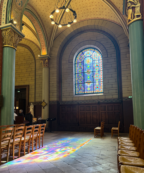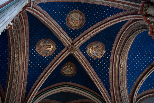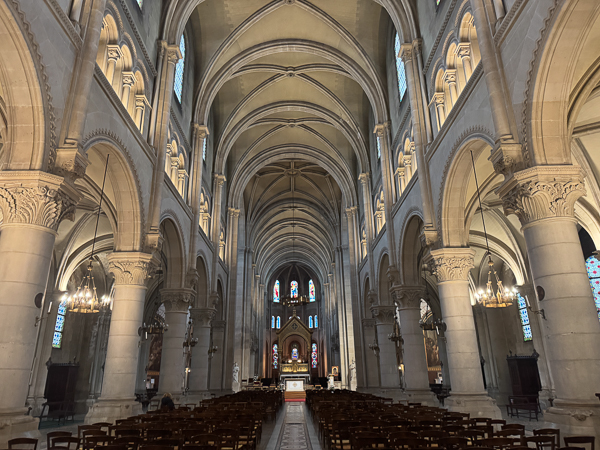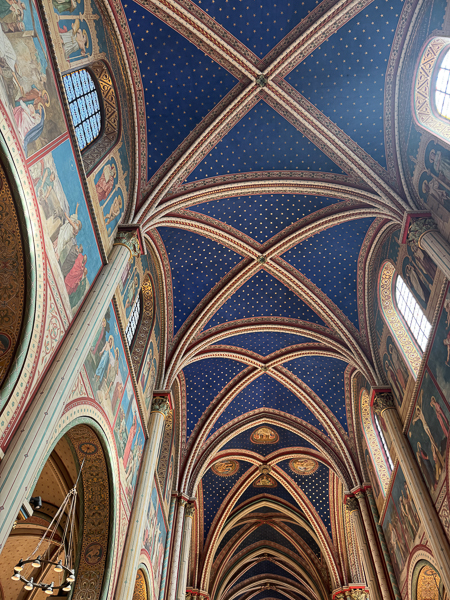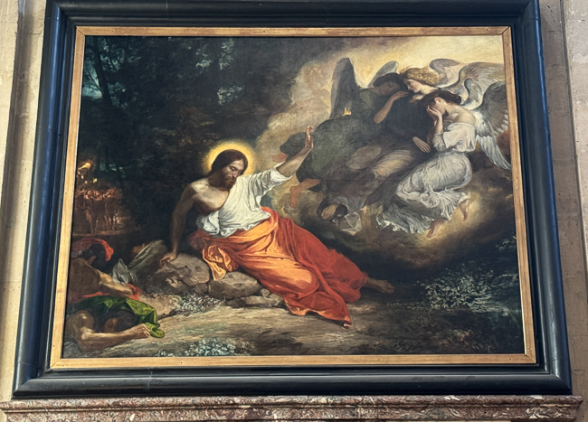 The half-dome above the altar is frescoed by Jules-Claude Ziegler, entitled The History of Christianity, showing the key figures in the Christian religion with — a sign of its Second Empire date — Napoleon occupying centre stage.