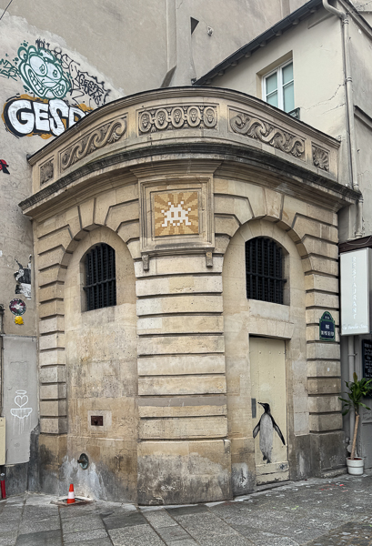 I had a lot of fun with these. The first Space Invader mosaic appeared in Paris in 1998. The mysterious artist, known only as Invader, chose pixelated characters from the 1978 video game Space Invaders as his inspiration.  Each one of these “invasions” is carefully documented and cataloged. There is an App – Flash Invaders that I downloaded and had so much fun with documenting the “invaders” I found around Paris.