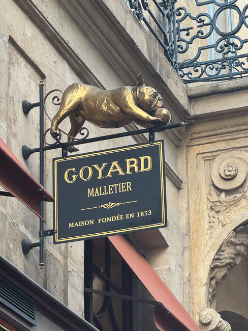 Inspired by Edmond Goyard’s real-life dog of the same name and breed, Hulot the dog has served in advertising since the 1890s.  Here he rules over the Goyard Store on Rue St. Honore.