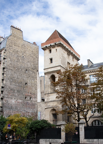The Tour Jean-sans-Peur or Tour de Jean sans Peur is the last vestige of the Hôtel de Bourgogne, the residence first of the Counts of Artois and then the Dukes of Burgundy. The tower was completed between 1409–1411 by Jean sans Peur. Now located in the courtyard of an elementary school. It is one of the best surviving examples of medieval residential architecture in Paris.