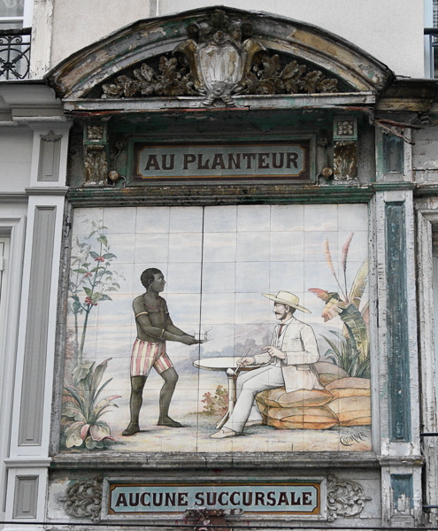 It should be of no surprise that the façade of Au Planteur, at 10 rue des Petits-Carreaux, remains a controversial subject. Installed on the facade of a 19th-century building to advertise a store selling “exotic products,” of which coffee was the main commodity offered. Classified as a historical monument on May 23, 1984, the painting on ceramic dates from 1890 and represents a black man in the service of a colonialist white man. It is one of the rare testimonies of the French colonial period in the capital.