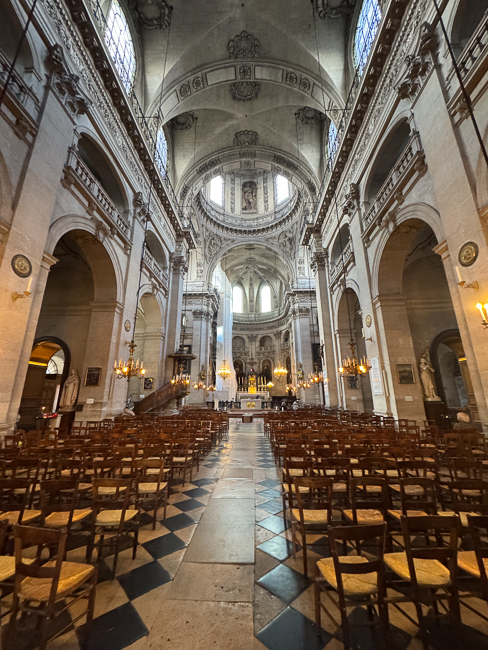I have walked past this church time after time without appreciating its history. The present building was constructed from 1627 to 1641 by the Jesuit architects Étienne and François Derand, on the orders of Louis XIII. It was the first church in Paris to break away entirely from the Gothic style and to use the new Baroque style of the Jesuits