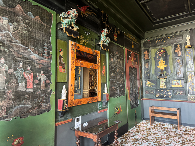 The Chinese-style panels were designed by Hugo in 1863-1864 and painted with the help of Tom Gore, a craftsman who was already working on the refurbishment of Hauteville House.