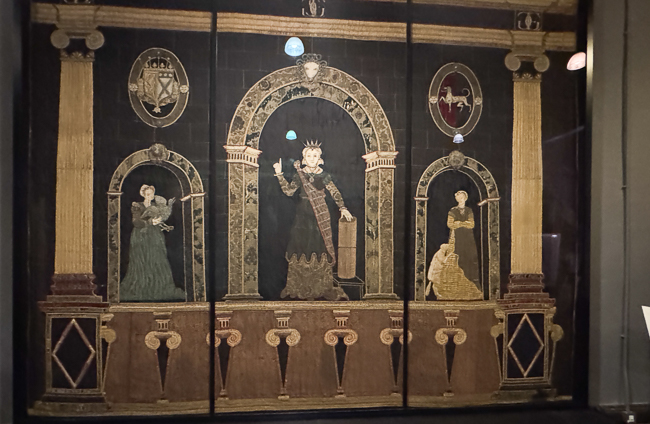 In another room are two large appliqué wall hangings depicting the ‘Noble Women of the Ancient World’.