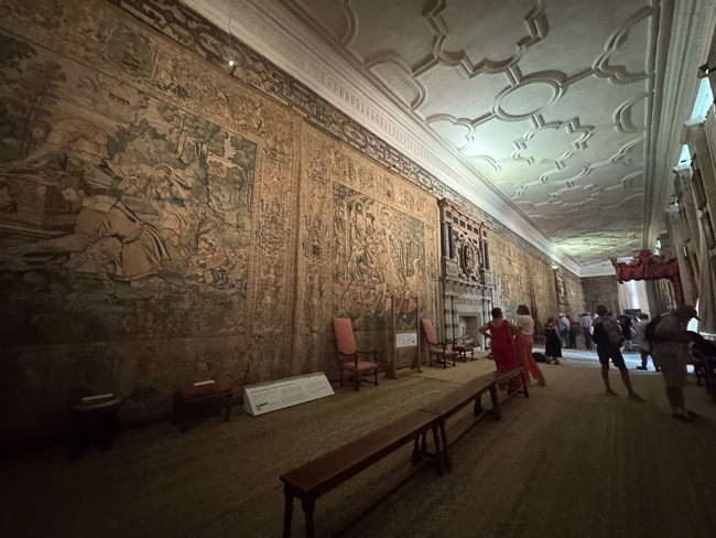 There are thirteen tapestries, which form one of the more significant collections of textiles in the world. They have hung in the Long Gallery since the end of the 16th century.